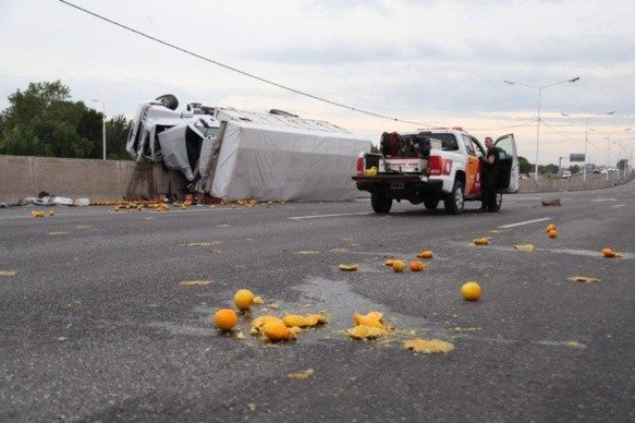Este lunes a la madrugada, un camión que transportaba naranjas volcó sobre Circunvalación, a la altura de 27 de Febrero. Uno de las personas que viajaban en la unidad murió. Según trascendió, era oriundo de San Luis. En tanto, dos personas más que iban en la cabina resultaron heridos y fueron trasladados al Heca.
